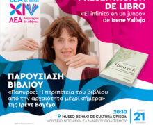 21 Ιουνίου, 2022 @ 8:30 μμ – 9:30 μμ – ΜΟΥΣΕΙΟ ΜΠΕΝΑΚΗ ΕΛΛΗΝΙΚΟΥ ΠΟΛΙΤΙΣΜΟΥ Ώρα 20.30 ΠΑΡΟΥΣΙΑΣΗ ΒΙΒΛΙΟΥ | «Πάπυρος: Η περιπέτεια του βιβλίου από την αρχαιότητα μέχρι σήμερα» της Ιρένε Βαγέχο «Μια νύχτα της παιδικής μου ηλικίας, στην άκρη του κρεβατιού, ο πατέρας μου μου διηγήθηκε τη συνάντηση του Οδυσσέα με τις Σειρήνες, κι εκεί ξεκίνησαν όλα». Σε αυτό το αφηγηματικό δοκίμιο, διασταύρωση ανάμεσα […]