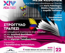 22 Ιουνίου, 2022 @ 7:30 μμ – 8:30 μμ – ΜΟΥΣΕΙΟ ΜΠΕΝΑΚΗ ΕΛΛΗΝΙΚΟΥ ΠΟΛΙΤΙΣΜΟΥ Ώρα 19.30 ΣΤΡΟΓΓΥΛΟ ΤΡΑΠΕΖΙ | «Η κολομβιανή λογοτεχνία στην Ελλάδα» με τη Μαρία Παλαιολόγου, τη Δήμητρα Παπαβασιλείου και την Αγγελική Βασιλάκου. Συντονίζει ο Κωνσταντίνος Παλαιολόγος Ο Γκαμπριέλ Γκαρσία Μάρκες, ο Άλβαρο Μούτις, ο Χοσέ Εουστάσιο Ριβέρα, ο Έκτορ Αμπάδ Φασιολίνσε, ο Χουάν Γκαμπριέλ Βάσκες, ο Αντόνιο Ουνγκάρ είναι ορισμένοι μόνο από […]